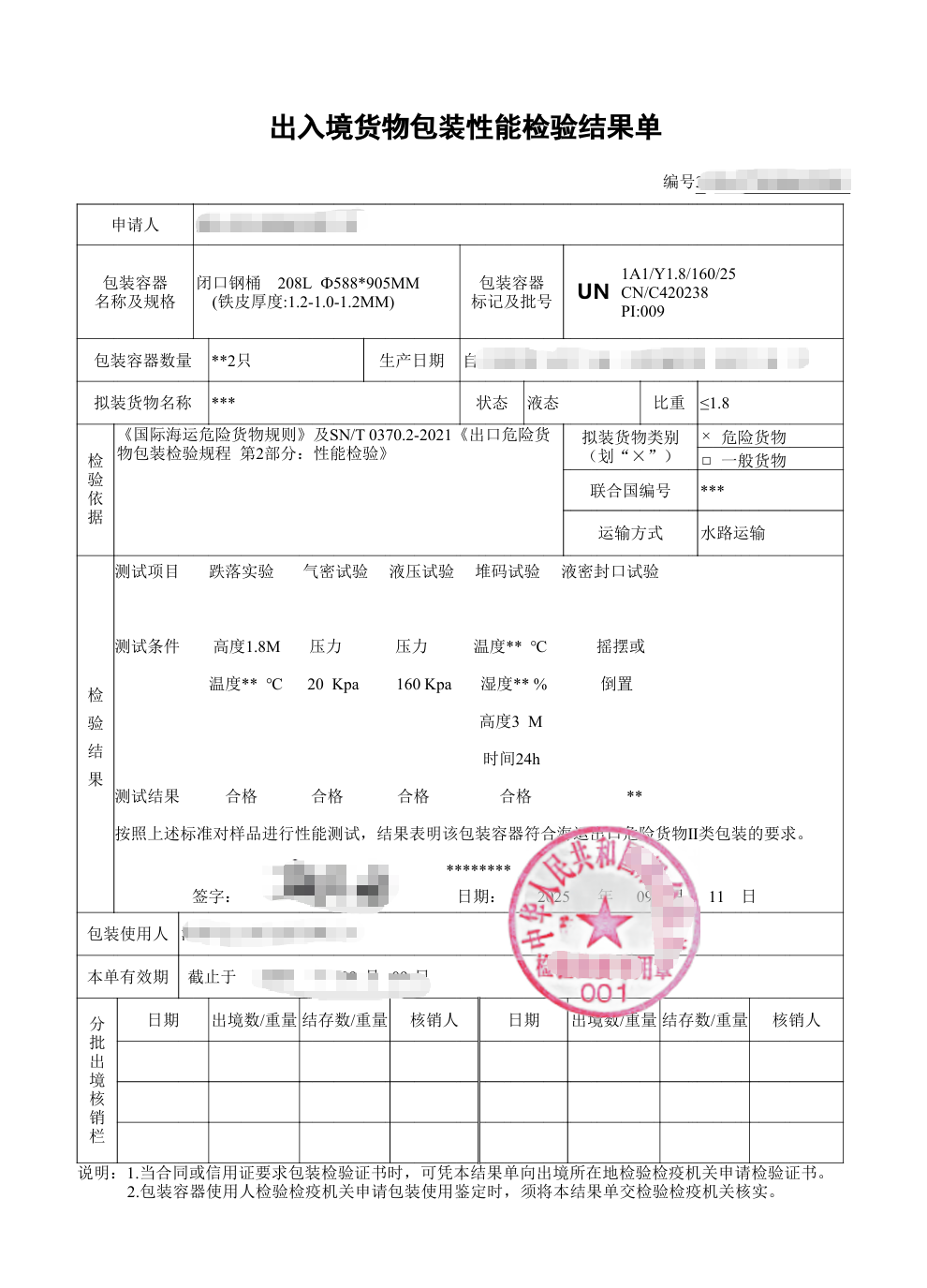 (1)适用于第4章中除第2类、第6类的6.2项和第7类以外的公路运输危险货物包装的检验;
