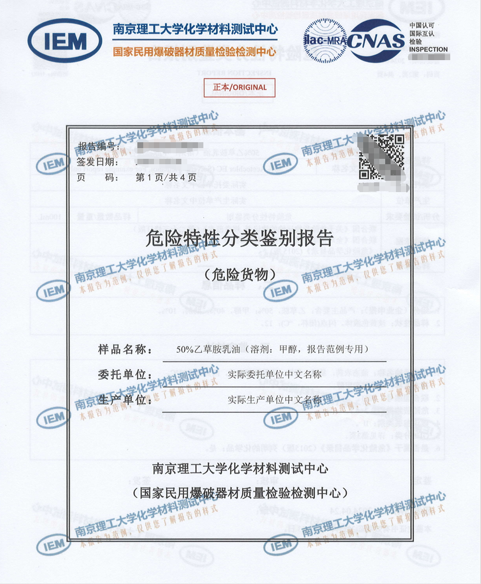 《危险特性分类鉴别报告》分为两种,分别为《危险特性分类鉴别报告》(TDG分类)及《危险特性分类鉴别报告》(TDG+GHS分类)。